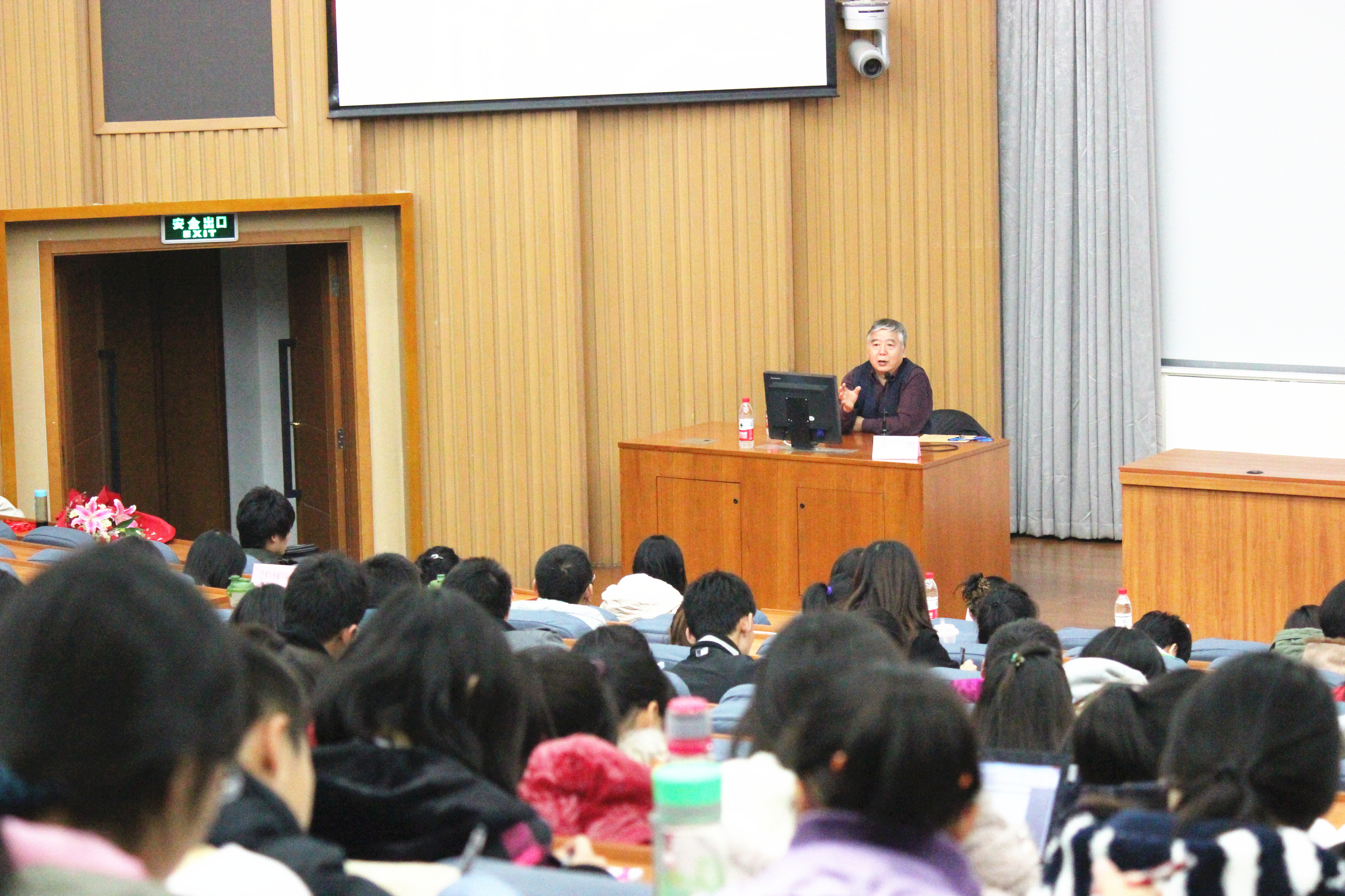 李东朗教授作了题为“社会主义道路与信念”的报告。报告紧密围绕十八大精神展开,李东朗教授结合自己的亲身经历,并以翔实的史料作为例子,为大家讲述了我国自20世纪初期由黑暗的旧社会迈向光明的社会主义新征程的曲折道路。基于这一清晰的脉络,李东朗教授首先剖析了中共十八大的新观点、新举措、新部署,由此引出中国共产党和中国的奋斗史,描述20世纪初期旧中国的黑暗状况,又将新中国成立六十多年的巨大变化娓娓道来。同时,李东朗教授又结合当下的社会语境,总结出中共十八大的要求,指出在新的征程中,必须有更加坚定的信念,更加重大的责任以及更为顽强的努力,增强忧患意识,谦虚谨慎,戒骄戒躁。最为难能可贵的是,李东朗教授还提出了十八大对青年的期望。