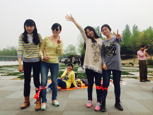 在放飞风筝的环节结束后,支部安排同学们进行了团队协作的两人三足比赛,将本次活动的气氛推到了高潮。两组同学们在比赛中积极协作,互相竞争,虽然因为配合不当做出了不少笑料百出的动作,惹得参赛的同学和围观的游客哄堂大笑,但是他们仍然坚持完成了比赛。支部的凝聚力在游戏的竞争与协作中获得了提升。