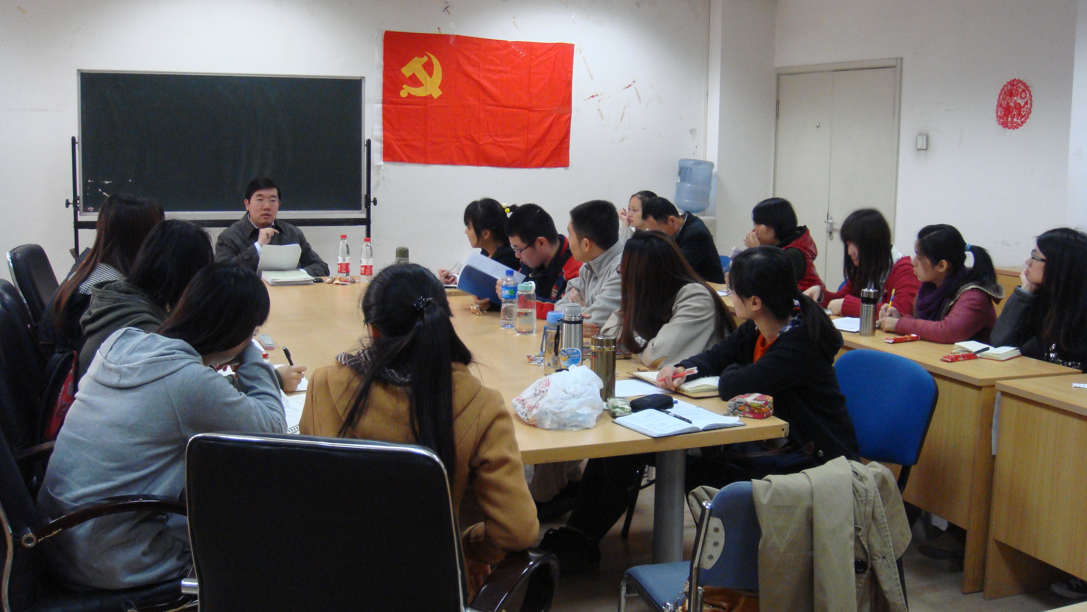 硕士第三党支部与古代汉语教工党支部开展共建活动,由古代汉语教工党支部书记齐元涛老师给同学们讲述开题报告撰写等方面的问题。到场的同学有20多人,主要来自古代汉语、现代汉语和语言学三个专业。