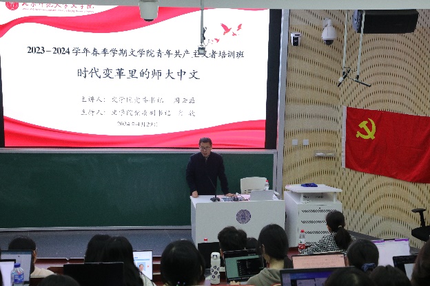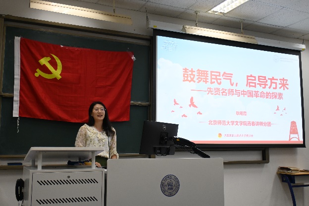 党委书记周云磊老师、党委副书记冉欣老师为参训学员带来理论讲座。周云磊老师从时间线索出发,追溯“时代变革里的师大中文”,回顾了师大中文学科在上个世纪30年代中期到50年代的发展与前行之路。周老师始终结合时代背景探索历史事件与笔趣阁