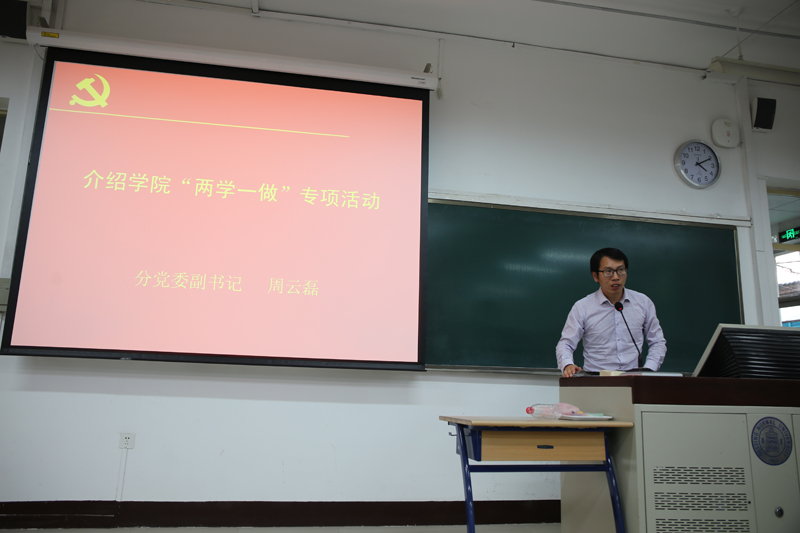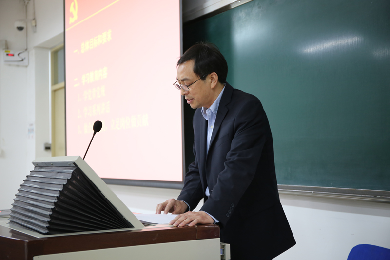 委员会关于在全体共产党员中开展“两学一做”学习教育的实施方案》提出的总体要求和目标、学习教育内容、具体方法措施以及工作要求进行了详细说明,并代表学院分党委对学院的学习教育工作进行了具体部署。他详细阐述了三个“三结合”的学习教育工作思路。即在工作理念上,责任意识、问题导向和创新精神“三结合”;在组织方式上,教职工、本科生、研究生党支部“三结合”;在学习内容上,理论、专业和实践“三结合”。要求各党支部高度重视,发挥特色优势,强化执行落实,用三个“三结合”推动学院“两学一做”学习教育深入开展。