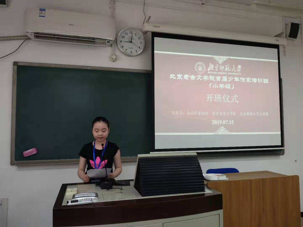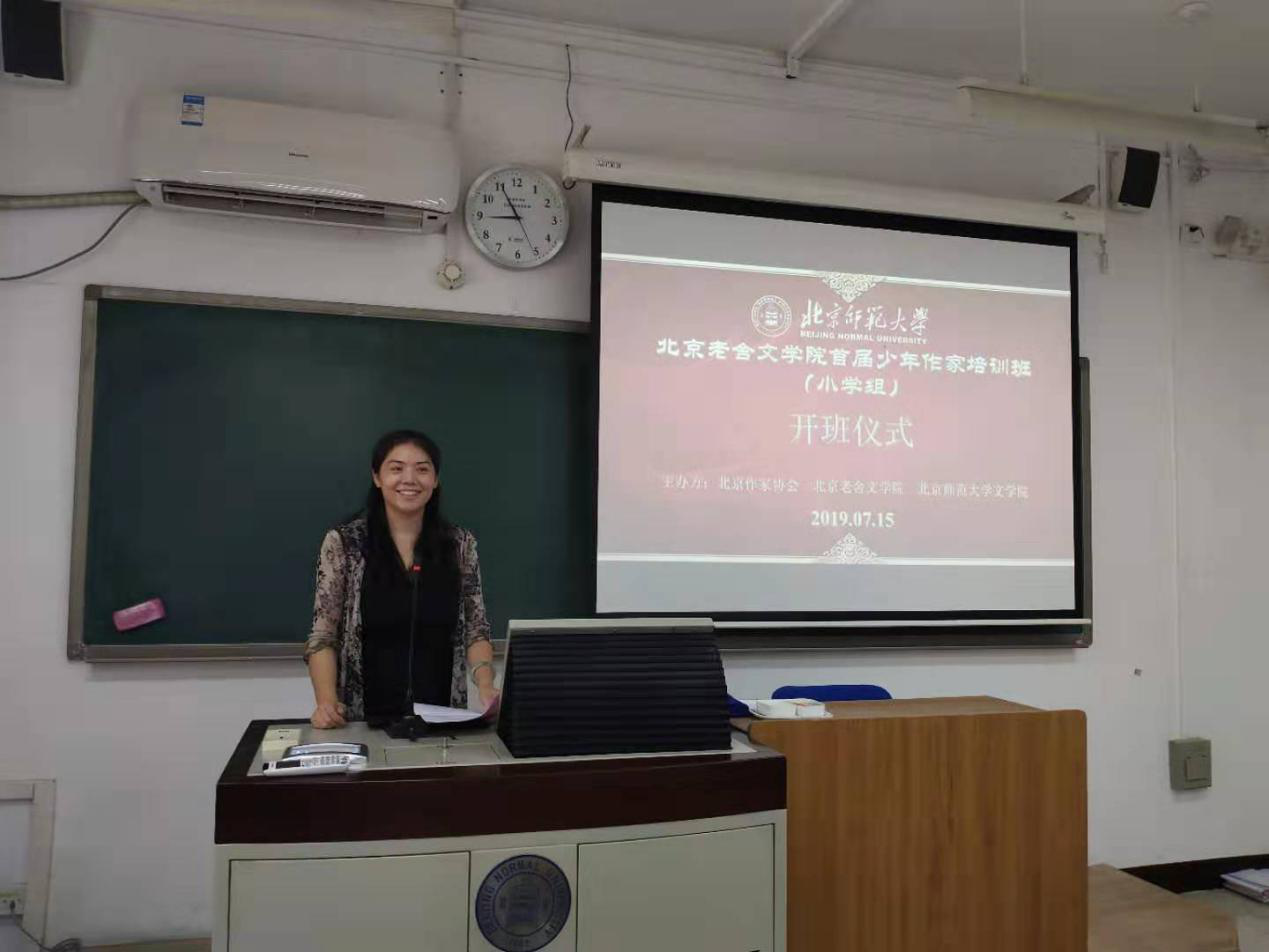 最大的职能是承担北京市文学人才培养和文学创作的指导工作,它的视野不止局限于成年人,更关注梯队建设,即不同年龄层的作家培养,而本次培训班的学员是梯队建设中最年轻的一批。她希望大家能通过本次培训学习更多创作方法,提升文学素养,能用富有少年气却不稚嫩的文笔去书写北京。最后,作为主办方之一,她对学员提出了学习要求,这些要求都寄予了她对学员们殷切的关怀和期望。