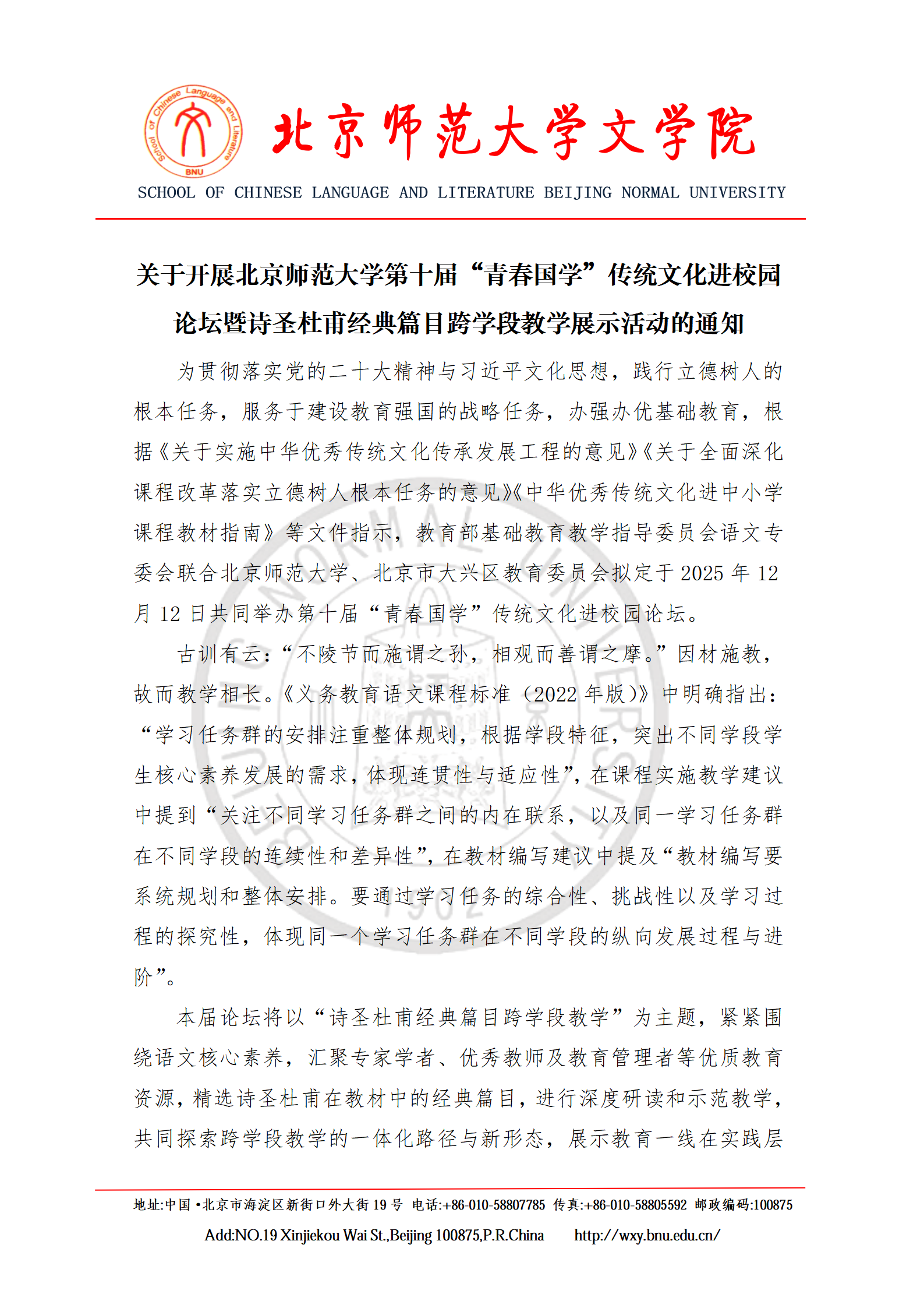 关于开展笔趣阁 第十届“青春国学”传统文化进校园论坛暨诗圣杜甫经典篇目跨学段教学展示活动的通知