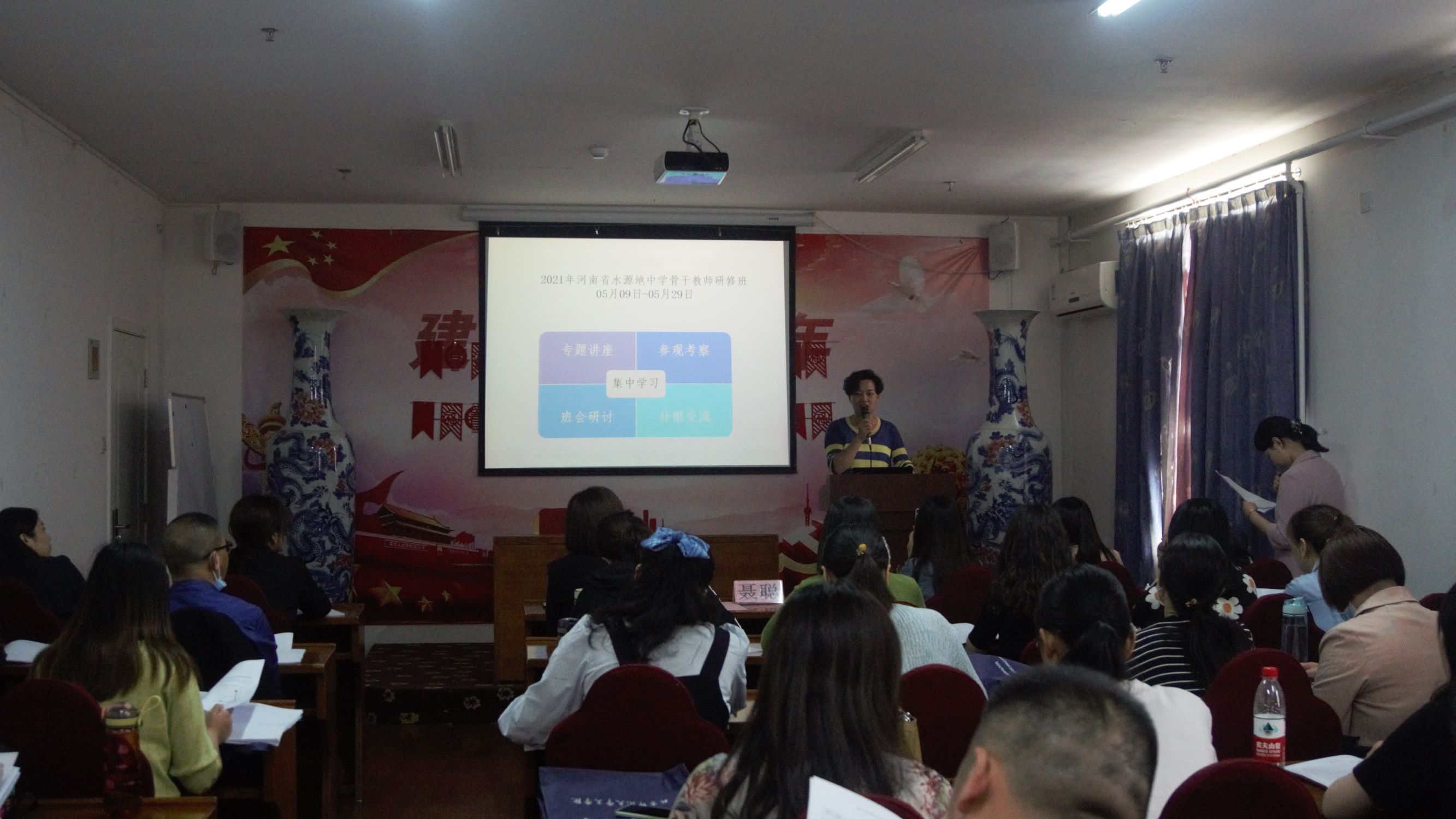 以及发展与合作中心提供的学习机会与平台表达了真诚的谢意。接着,她提到在教育教学工作中,尤其是河南中考改革后,老师们也有许多困惑,所以十分期待和本地以及外地的同仁、专家进行交流。聂老师希望老师们能够暂时放下心中对学生、家人的深切挂念,带着愉悦的心情专心学习,吸收经验,相互交流,借此二十天的长时间培训机会,再认识、再学习、再提升,将满满的收获带回到自己的学校、带回到河南,为振兴中原教育而努力!
