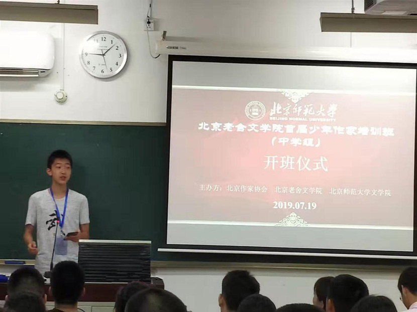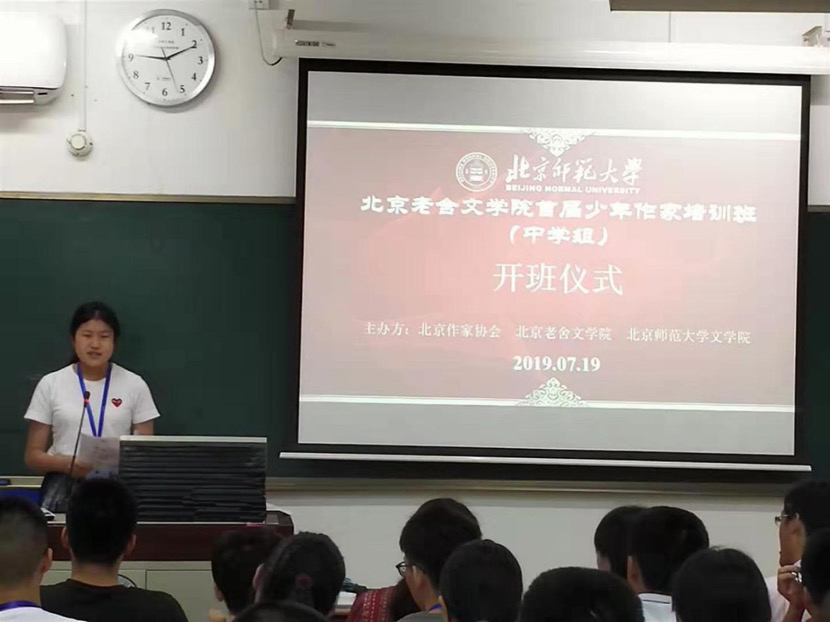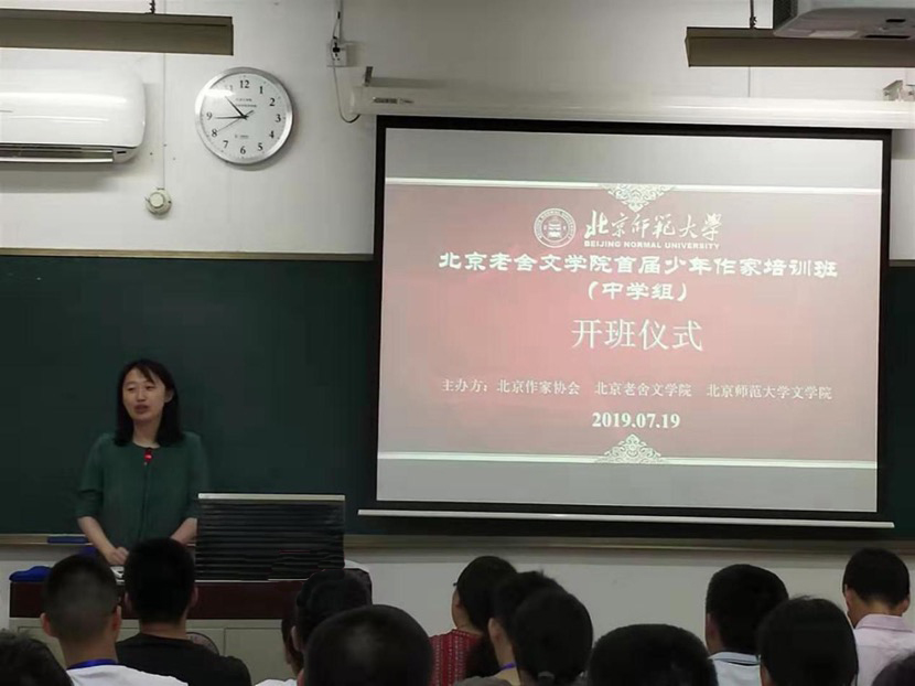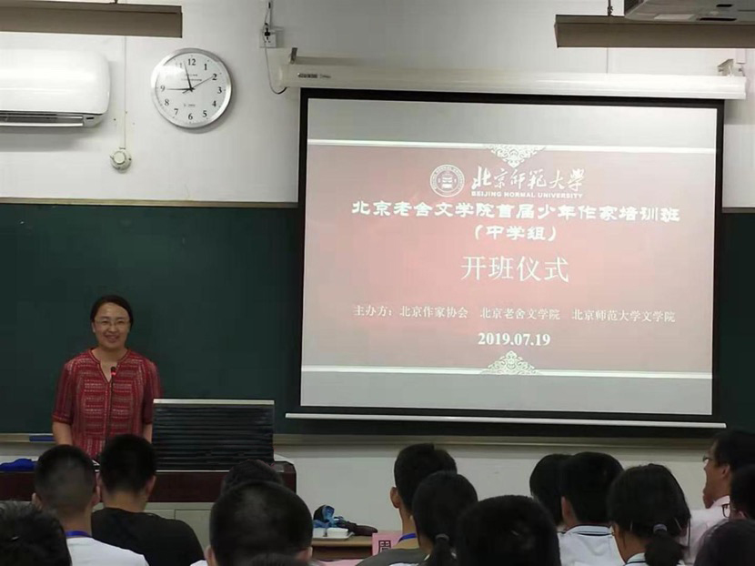 北京小作家协会秘书长周敏老师也对同学们的到来表示了热烈的欢迎,她提到了此次来参加培训班的同学们主要由小作家协会会员与团体会员校推荐学生构成,并叮嘱同学们要多结交不同学校的同学,强调只有丰富的生活才能写出厚重的作品。其次,周敏老师还介绍了北京老舍笔趣阁