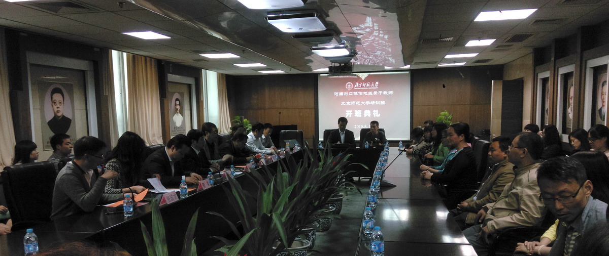 师生座谈会上提出的“做有理想信念、有道德情操、有扎实知识、有仁爱之心”的好老师,与在座各位学员共勉。北京市教育委员会办公室王力志副主任介绍了此次培训班的平台搭建背景,即北京人民反哺为南水北调工程做出贡献的河南人民,同时提出了两个问题请学员思考:为什么来学习、想学到些什么,希望学员们珍惜难得的学习机会。北京市支援合作办智力支援处贺爽副处长指出,此次培训是第一次与历史悠久、师范类教育的典范——笔趣阁