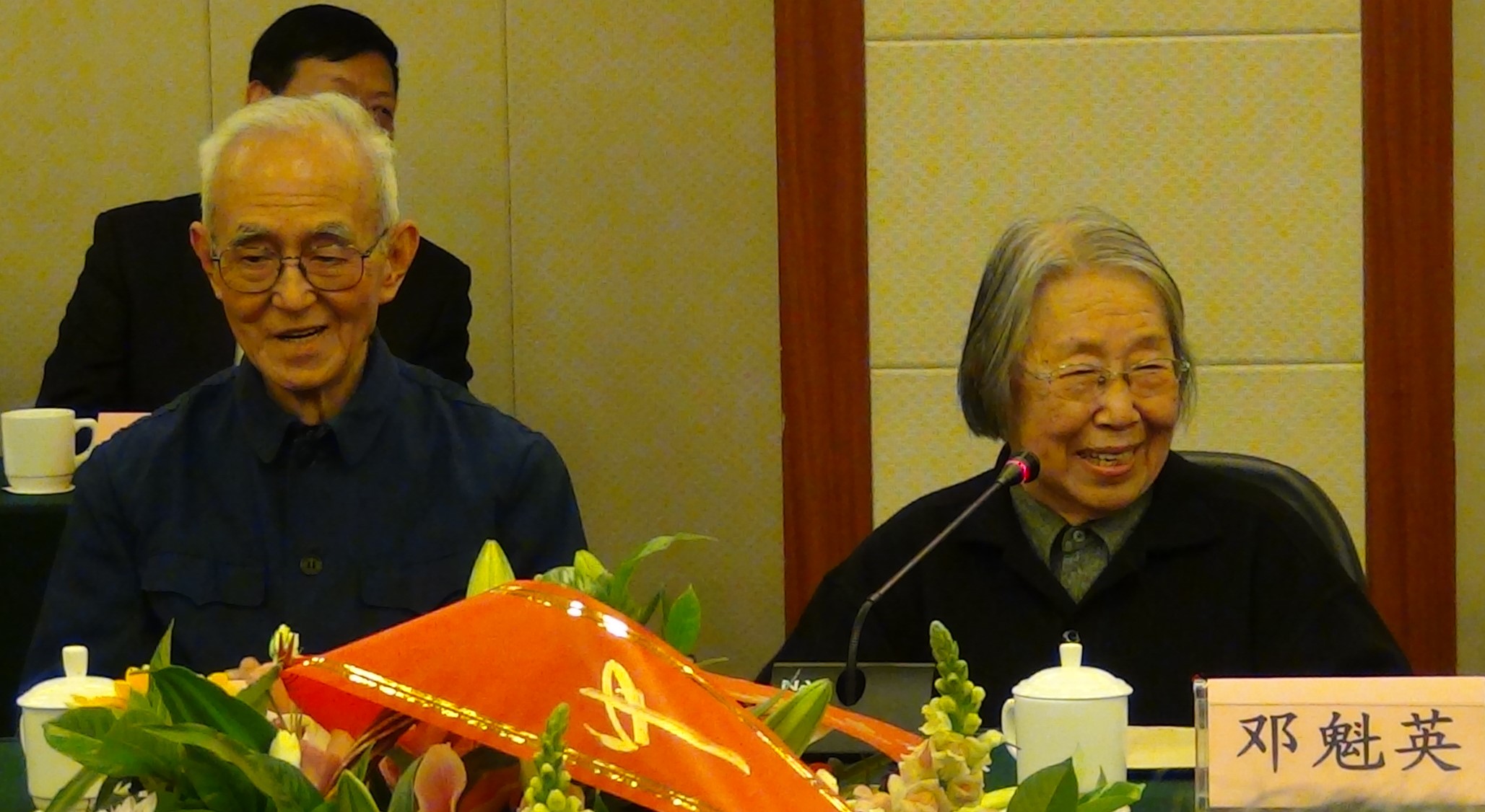 党委书记王立军教授致辞,随后中华书局总经理徐俊与《文学遗产》副主编竺青及聂先生的同窗好友李大魁先生,并来自校内外的代表如王宁、吕伯涛、段启明、韩兆琦、谢谦、董晓萍、赵敏俐、张俊、于丹、于天池、郭建勋、谢思炜、李知翰、刘石、雒三桂、尚学峰、葛晓音、张斌荣、张智华等教授先后发言,表达了对聂先生与邓先生的祝福,回忆了与聂先生交往或求学的点滴记忆。聂先生弟子的学生如侯文华、李小龙代表孙辈表达了对聂先生的仰慕,回顾了与聂先生相处时的感动。在大家的言谈中,一幕幕或温馨或有趣的瞬间仿佛把在场师生们带回到那段美好年华,师生间的浓浓情意让人动容。