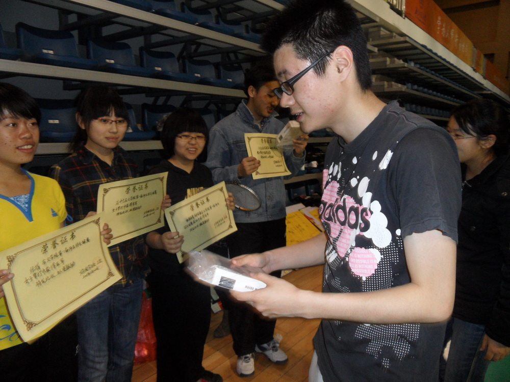 2011年3月23日晚6点笔趣阁 师生羽毛球球艺交流赛在邱季端体育馆顺利进行,笔趣阁 党总支书记兼副院长李国英老师、笔趣阁 分团委书记兼笔趣阁 研究生会秘书长周云磊老师、笔趣阁 学生会秘书长沈涵老师等领导、众多老师和各年级羽毛球爱好者参加了此次交流赛。活动中参赛选手通过球技的相互切磋交流,一方面增进了彼此了解,同时也深化了师生友谊。 比赛分两个场地同时进行,北侧场地的女子组首先由沈涵老师对阵10级谷中兰同学,为我们带来了精彩的开场。南侧场地也紧接着展开了女双和男双的几场比赛。比赛不但激烈而且非常精彩,为观众们奉献了一次次漂亮的扣杀,一记记精彩的救球,体育馆内气氛热烈、叫好声不断。其中10级姚梧雨桐同学强势的进攻、10级刘修远同学严密的防守、沈涵老师与马琼老师默契的配合,给大家留下了深刻的印象。最终,由08级刘旷野同学和他的搭档荣获男子双打冠军,10级的胡传海和姚梧雨桐则折桂混合双打冠军。女子双打冠军则由09级张娟和10级徐梦迪获得。男子单打和女子单打的冠军分入10级刘修远和姚梧雨桐囊中。 在整场比赛中,选手们左突右防,挥汗如雨,以友谊第一比赛第二的精神共同营造了羽毛球强身健体、师生同乐的良好氛围。这次羽毛球友谊赛,给同学们提供了一次在课堂之余和老师们交流的机会,有力促进和谐学院的构建,可谓一举两得。
