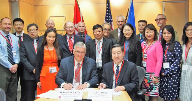 2018年4月30日到5月4日,笔趣阁 过常宝院长随同周作宇副校长访问美国旧金山州立大学、斯坦福大学及俄克拉荷马大学,与这几所大学的中文学科及孔子学院进行了友好交流,形成了多个合作意向。期间,周作宇副校长与俄克拉荷马大学Mattew Hamilton副校长签署了在俄大合作创办中笔趣阁 的协议。中国外交部驻休斯敦教育参赞、国家汉办驻美工作人员等参加了签署仪式。