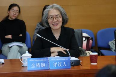 郎文洁的报告《汉语“洋+NP”结构多维考察与探究》,从构词单位的角度梳理了从“西洋+NP”结构发展到“洋+NP”结构的过程。延世大学的金椿姬老师针对韩国汉语本土教材的现状和特点,作《韩国本土汉语教材特点》报告,建议提高教材中汉语语用的真实性、编写适应不同教学法的教材。随后,金椿姬、郑南娜、孙银新老师分别对几位师生的发言进行了评议。
