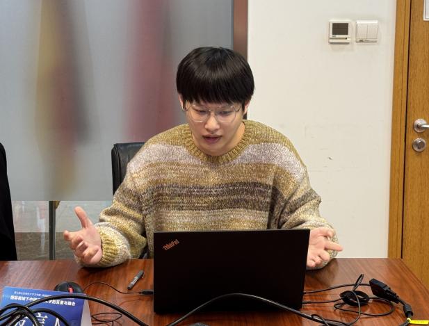 的王浩铭报告了《名词融合与汉语离合结构》,从伪名词融合的视角对汉语离合结构进行重新认识。随后,洪爽、金椿姬、孙银新老师分别对几位师生的发言进行了评议。