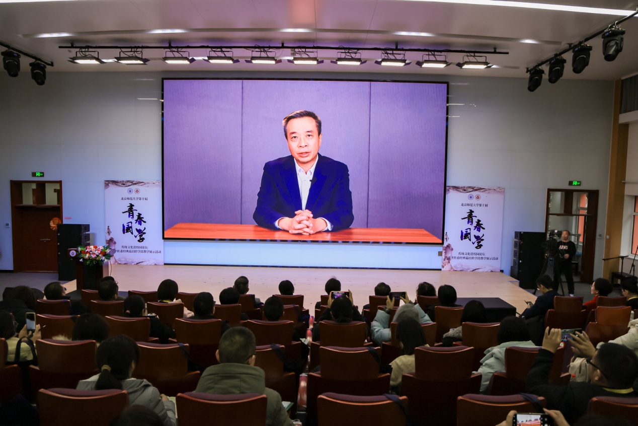 “青春国学”传统文化进校园论坛十年的重点工作,并重点介绍了2025年在教育服务领域取得的突破性进展:一是与陕西师范大学出版社合作,出版中华优秀传统文化启蒙读本《讲给小学生的中华服饰与礼俗课》(共两册),从服饰制作到礼乐风俗,从历史知识到处世智慧,构建全景式传统文化教育体系;二是深入新疆和田地区墨玉县开展调研并共建国通语体验馆,该项目已于2025年建成启用,获批国家语言文字推广基地特色项目,有效推动学术资源向实践服务转化,积极助力于国家通用语言文字推广战略。