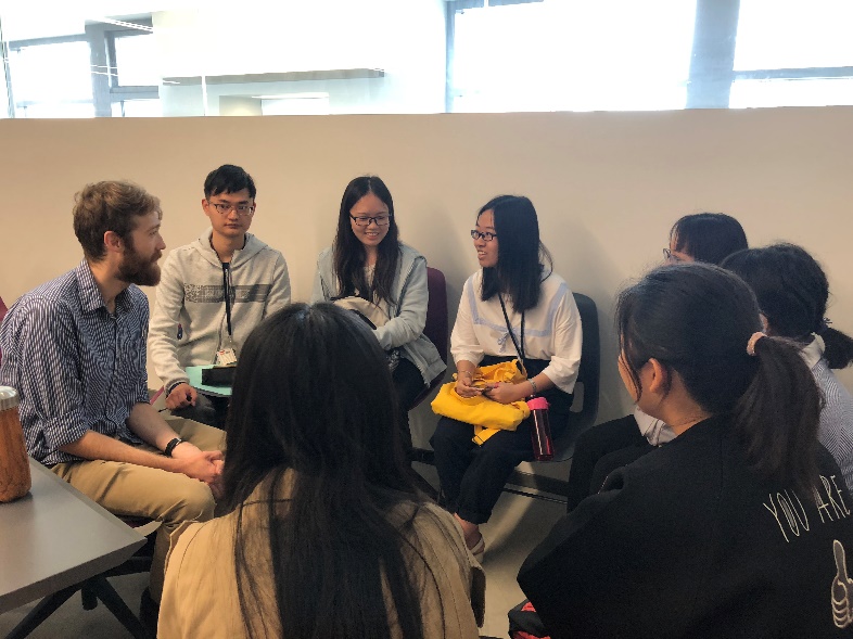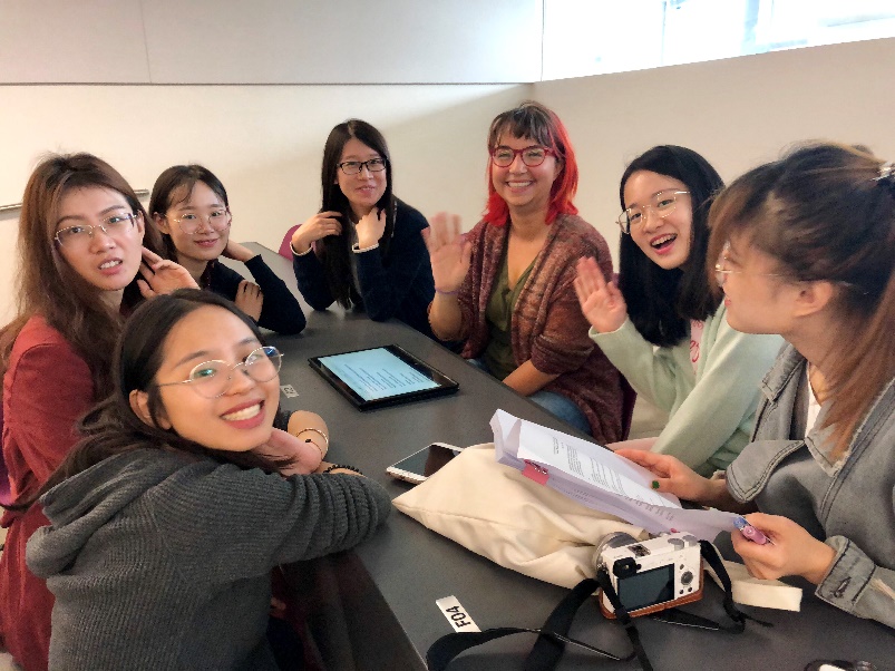 接下来,同学们纷纷投入到了学习生活中。俄勒冈的课堂精细而有趣,每个课堂都有五位助教,负责组织课堂讨论,以及课后回答同学疑问,同学们也相应被分成五组。教授们的课堂风格鲜明,英语论文写作课上Malewitz教授借助托尼·莫里森的短篇小说《宣叙》指导同学们文学评论的写作技巧;美国原住民文学课上Bernardin教授通过分析D’Arcy McNickle的小说《Train Time》,讨论了美国原住民文学中原住民与外来移民者的文化冲突;文学作品精读课上Davison教授通过厄普代克的短篇小说《A&P》解读美国现实主义与现代主义小说的风格特征与阶级思考,Ward教授则选取了一则名为《Goblin Market》的长篇诗歌,分析其写作技巧、主要意象的象征意味,以及其中对资本主义的些许隐喻;俄勒冈当地文学课上Moore教授带领同学们阅读小说《永不让步》中的片段描写,又联系当地环境与人文特征,介绍俄勒冈文学与作家群……每一堂课都有着明确的主题和思路。在教授们的鼓励机制下,同学们的积极性也极其高涨,课堂上时而有激昂的讨论,时而迸发出观点契合的开心笑声。第一周的学习时光匆匆结尾,同学们在身体的时差中认真地预习阅读材料,朋友之间也互相帮助促进理解;茶余饭后的悠闲时光,却总是看到大家翻材料查单词的身影。