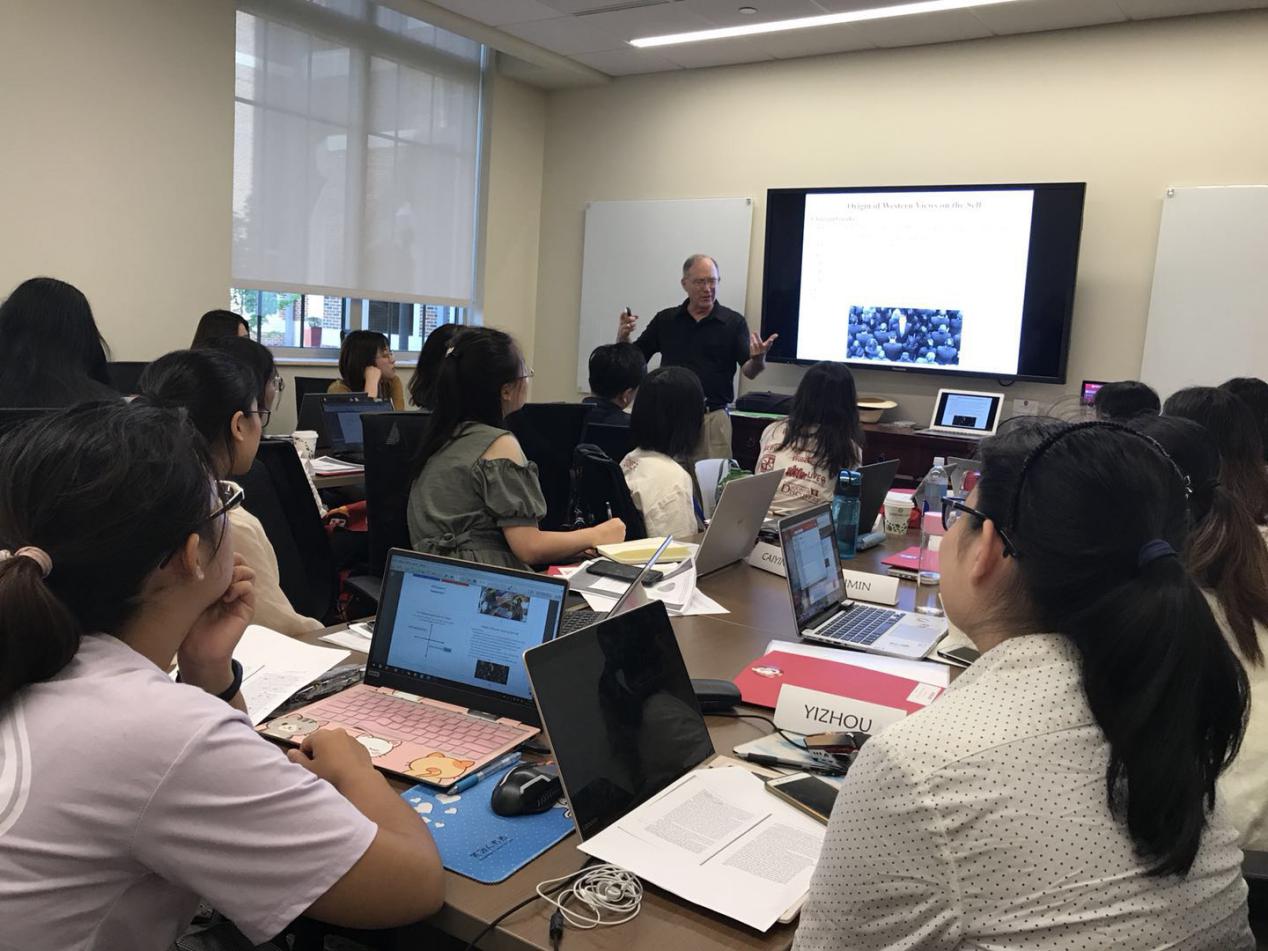 他不时用中文和在座的各位同学讲解一美国人完全不理解的词汇,比如“面子”。Dr.Bell坚持全程站立讲课,并且一次2小时起,午饭后也不休息,精神矍铄。同学们深受其感染,在和其交流中进一步体验了中美文化的异同点。