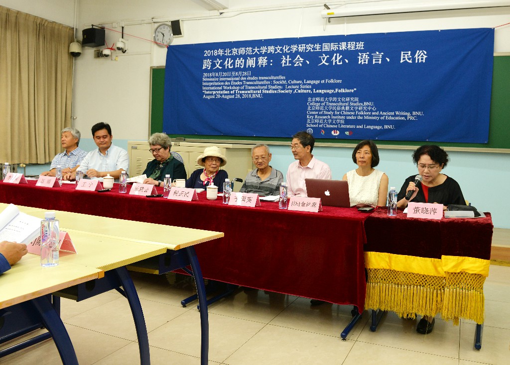 北师大民俗典籍文字研究中心主任李国英教授致辞。他强调两点:一是如何推进跨文化视野下的中国传统文化研究?二是如何通过跨文化研究推进学科建设和人才培养工作?跨文化学研究生国际课程班的建设,将基础研究、学科建设与研究生教育相结合,是一条可行途径,我们将继续走下去,希望把更多的研究生培养成人类优秀文明和和平社会建设的有用人才。
