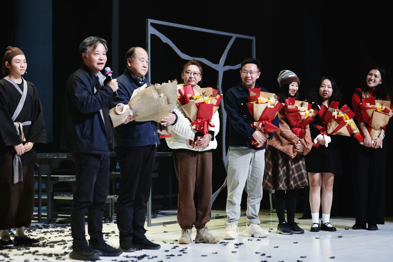 教授余华感谢大家对小说及话剧《古典爱情》的厚爱。此次改编基于《古典爱情》,辅以《鲜血梅花》,效果大放异彩;下回尝试《鲜血梅花》为主,《古典爱情》为辅,创造的大门又将继续敞开。余华表示,先锋小说戏剧化改编的成功实践,得益于北师大为学生成长成才提供的广阔舞台。希望主创团队进一步平衡剧作的文学性和哲理性,让北师大精品在首都乃至全国的巡演中传播开来,与更多喜爱文学、钟情戏剧的朋友们同在。