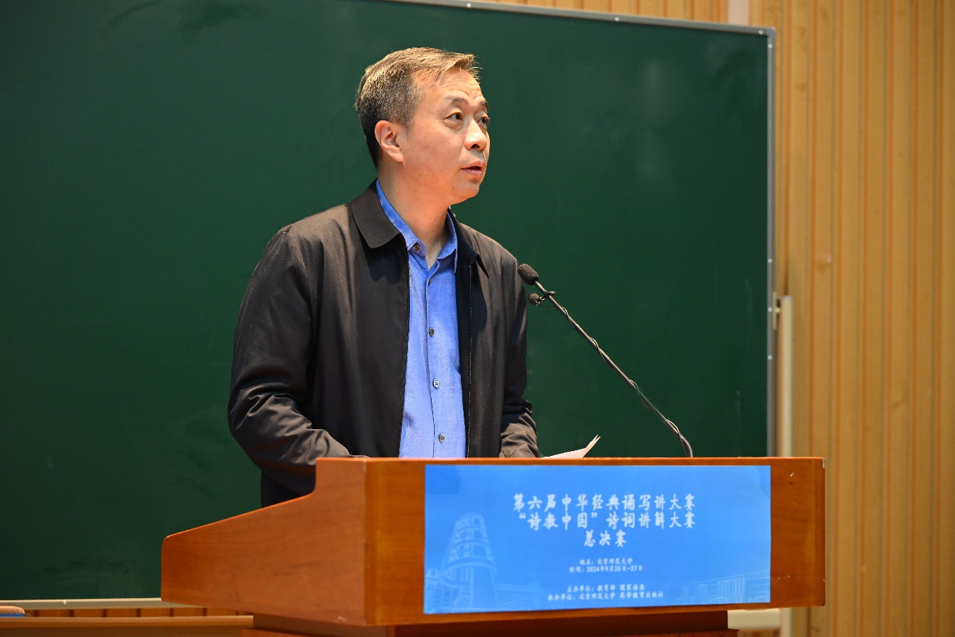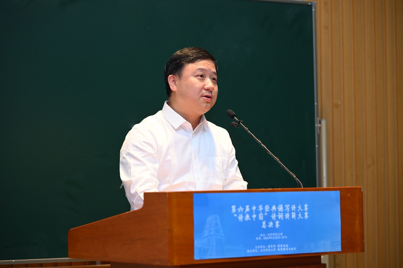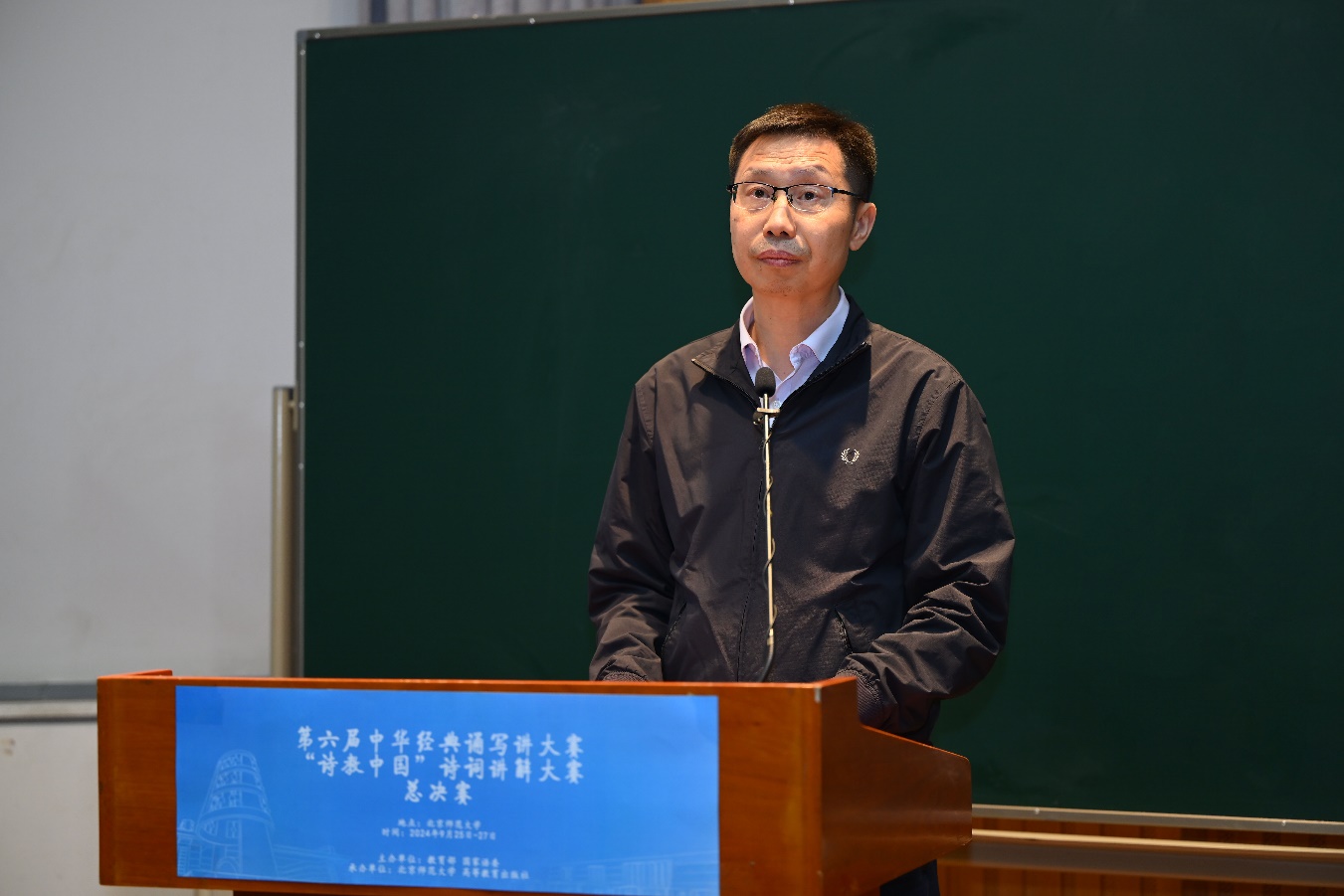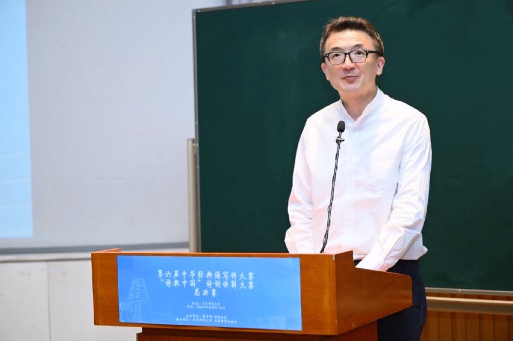 党委常委、副校长康震在发言中强调了中华优秀传统文化的重要性,指出经典诗词是中华文化的瑰宝,承载着历史记忆和民族情感。在“四有好老师”提出十周年之际,康震鼓励参赛者用生动的语言和真挚的情感去讲解诗词,让诗词在新时代焕发新的生命力,并表示将持续探索诗词教育的新模式、新路径,不断推动中华文化传承、发展与创新。