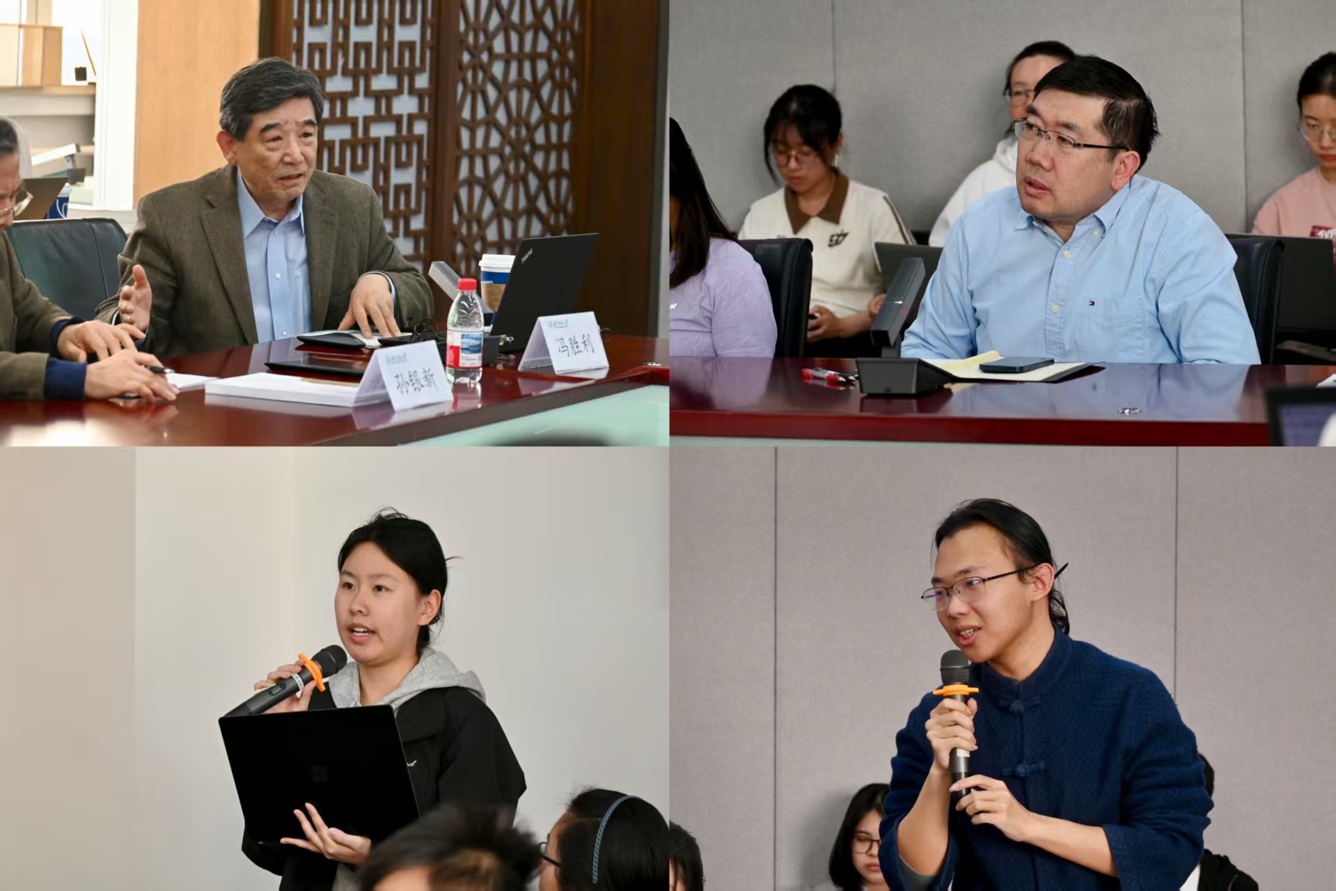 在讨论环节,到场师生就语气词语音研究中的“跨越”、“真例外”与“假例外”的边界,以及“跨越”背后的语言哲学内涵等话题,与冯教授展开了交流,现场气氛热烈。