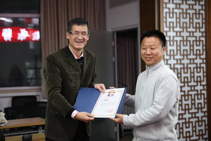 为邱道学老师颁发校外导师聘书,到场师生合影留念。本次讲座在热烈氛围中圆满结束。
