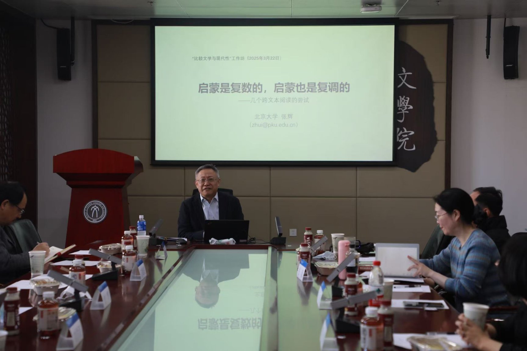 上午的会议由刘洪涛教授主持。首先做发言的是中国比较文学学会会长、北京大学中文系张辉教授。