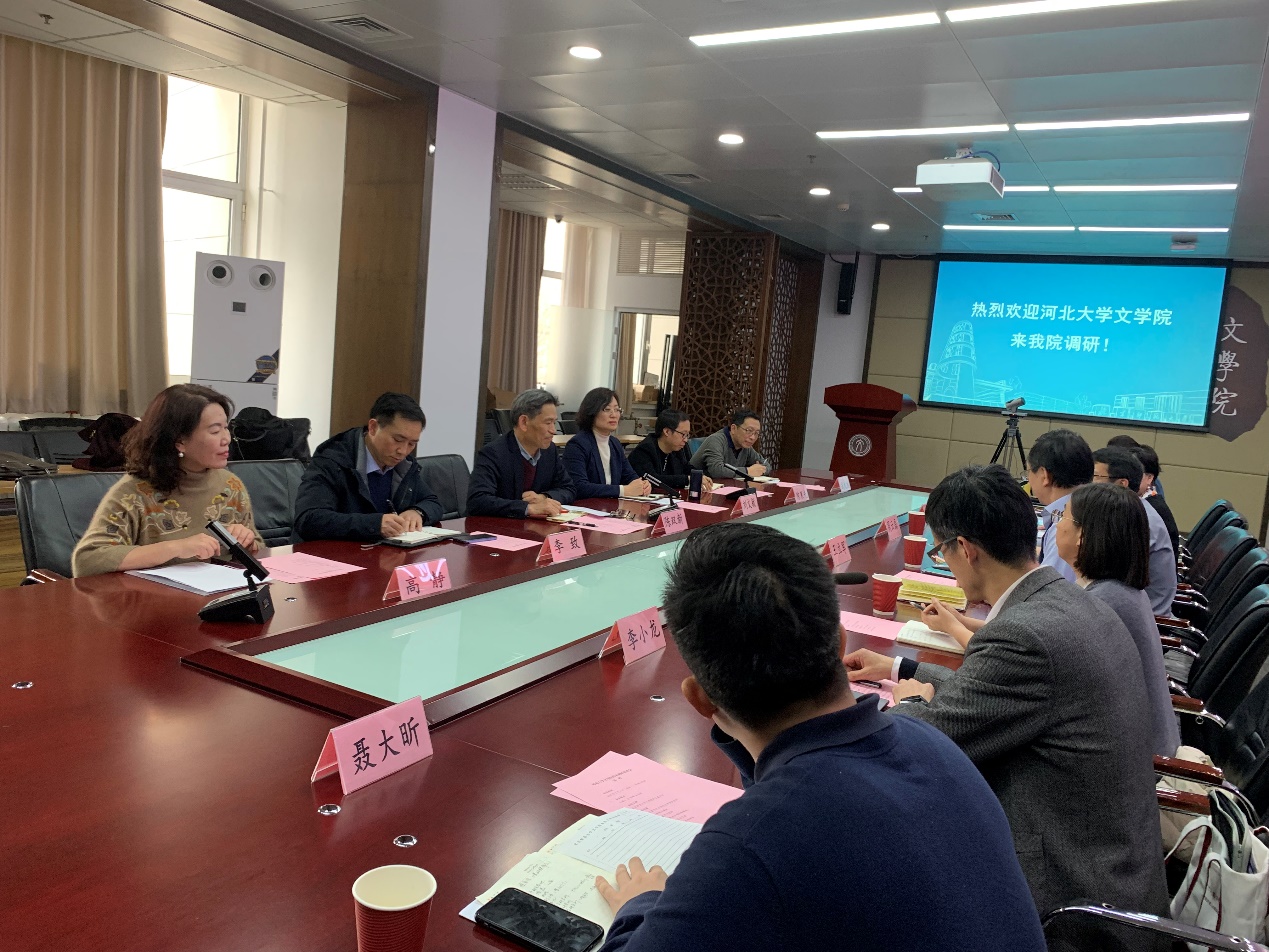 王立军院长代表学院对河北大学笔趣阁 的来访表示热烈欢迎,并向对方介绍了学院的整体情况。双方就学生交流、海外研修资源共享、学科建设等方面进行了深入交流。