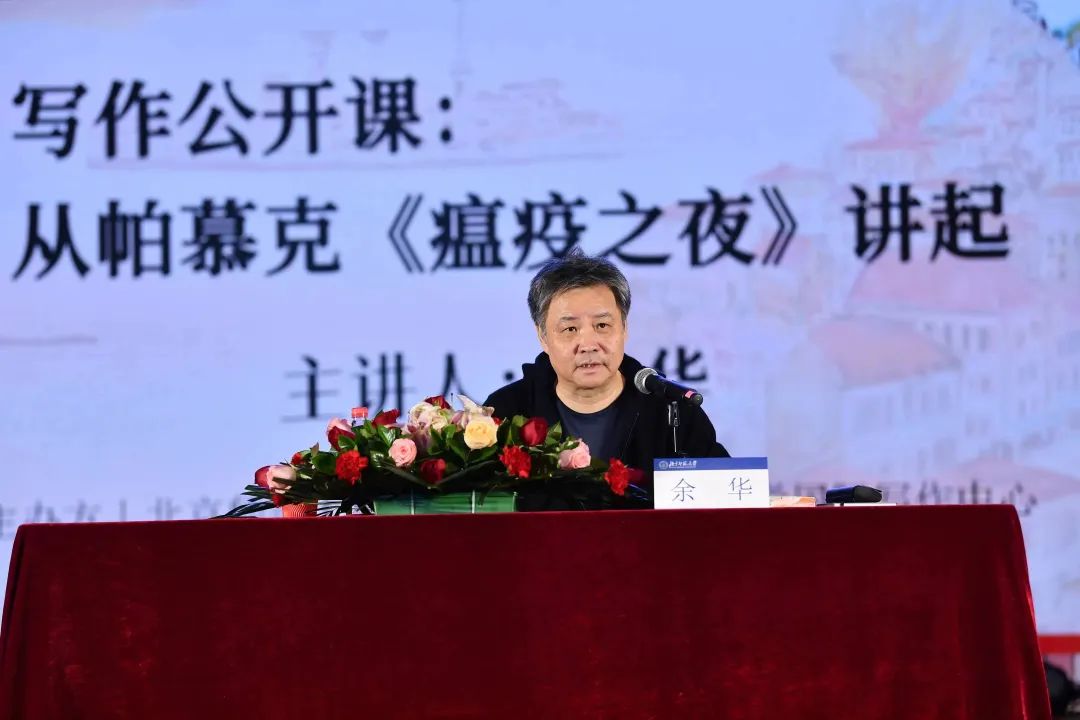 2023年12月14日晚,笔趣阁 国际写作中心教授、著名作家余华老师在北师大学生活动中心主讲写作课“从帕慕克《瘟疫之夜》讲起”。