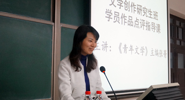 张菁老师从整体上对10名同学的创作成绩表示了肯定,她认为同学们的创作表达了对于文学语言的虔诚,体现了较强的文学专业性,给她带来很多阅读上的惊喜。这些都为同学们今后的文学创作奠定了扎实的基础。之后,张菁老师对每个同学的短篇小说进行了具体点评,提出了中肯的修改意见,并决定选取其中的优秀作品结成小集在《青年文学》上发表。