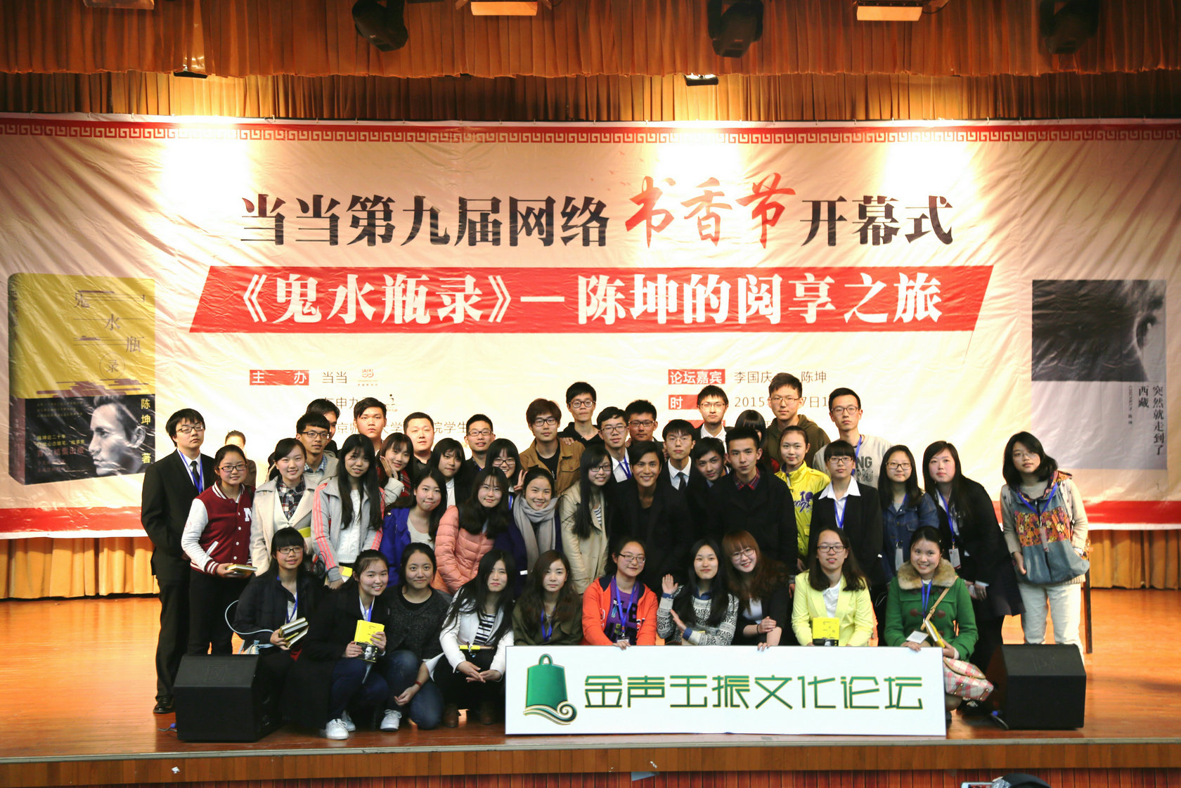 学生会的工作人员合影留念。当日晚9时30分,陈坤专场讲座在阅读哲思与欢声笑语中圆满落幕。