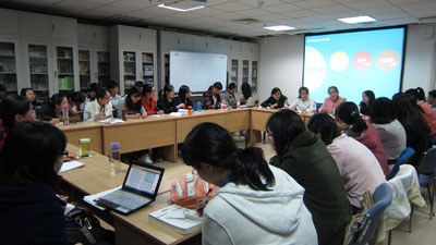 王星懿师姐是语言学与应用语言学专业的毕业生,现在北京市十一学校初中部任教。师姐介绍了十一学校教师工作的基本情况,并建议大家在应聘时一定要展示出自己的个性和特长,她坦言自己曾经面临的困惑和走过的弯路,希望研三的同学能以从容、淡定、自信的心态迎接招聘,并祝愿同学们能够顺利度过即将遇到的难关。任萍师姐是中国古代文学专业毕业生,现为北师大二附中高中语文教师。她主要针对于研一研二的同学提出了建议,并详细介绍了自己的笔试、面试过程和经验教训。她认为过硬的专业知识和深厚的学养无疑是进入名校的敲门砖。郑宁师姐是学科教学(语文)专业毕业生,现担任北京四中语文教师。师姐认为做中学教师辛苦却幸福,建议师弟师妹应聘前应先想好自己喜爱并适合的教学学段,再做充分准备。三位师姐细致而生动的讲述让在场的每位同学都受益匪浅。
