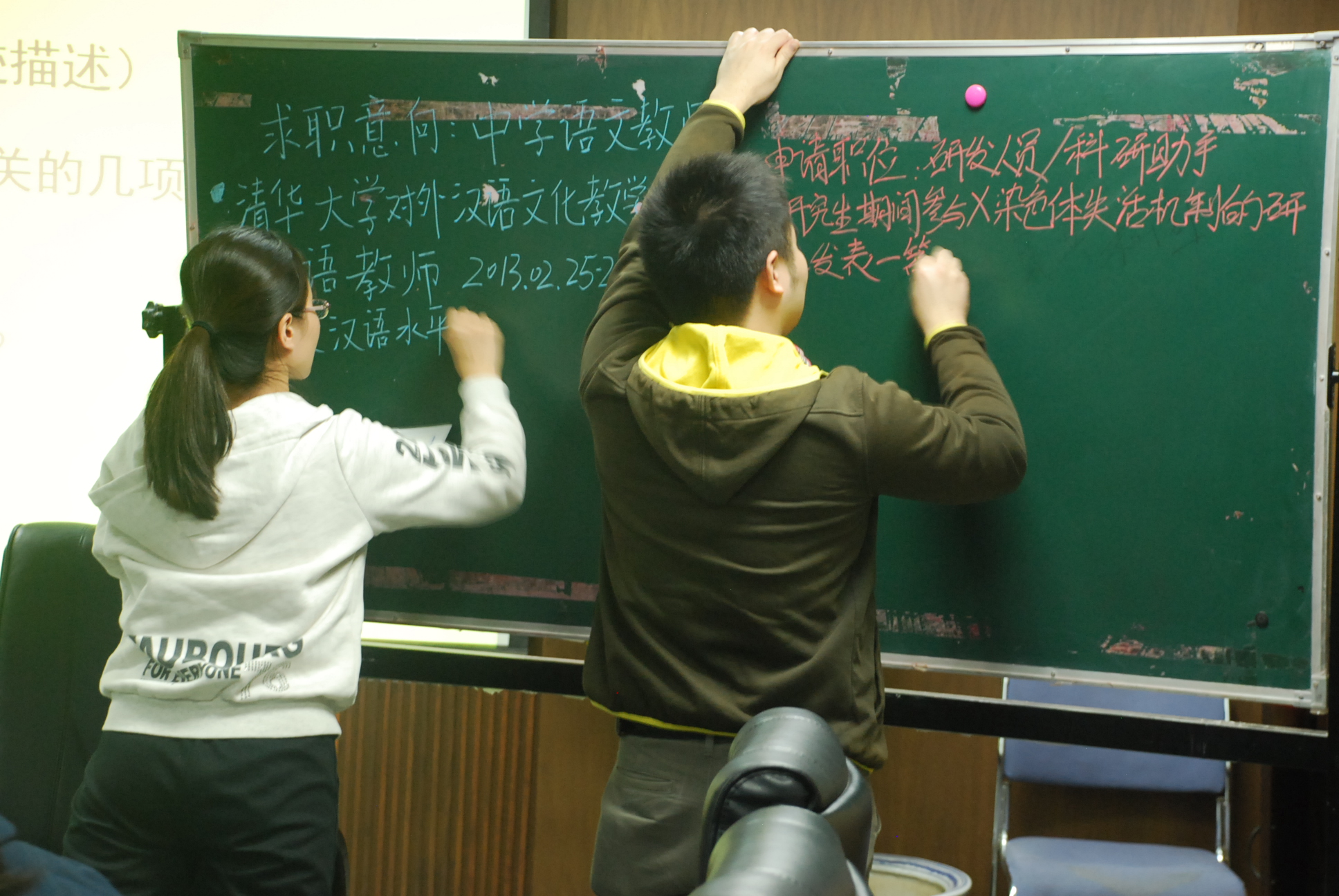 接下来,胡老师用轻松活泼的语言和不时穿插期间的案例详细地向大家介绍了简历制作和面试的技巧。不仅如此,胡老师还指导同学们进行了两次简历制作的现场练习,引导同学们在自评和互评中完善和美化自己的简历。