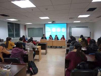 现供职于高等教育出版社的刘纯鹏师兄和新华社的杨舟师姐向大家介绍了自己的求职过程和目前出版媒体行业的工作现状。在求职前期,虽然“国考”失败,简历投出又石沉大海,但他们始终朝着明确的目标不懈努力,最终守得云开见月明。叶帆子师姐从“国考”大军中脱颖而出,进入中央文献研究室工作,她详细地介绍了“国考”中岗位的选择以及笔试、面试应如何准备。李佳玲师姐现就职于北京互联网信息中心,尽管她的求职过程相对简单,但是她以自己的亲身经历提醒大家,抓住实习机会,就有实现由实习生转正式员工的可能。