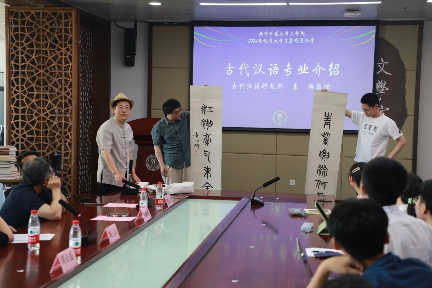 现代汉语研究所孙银新教授、理论语言学研究所许小颖副教授、古代汉语研究所孟琢教授和各位老师代表详细地为参营同学介绍各所发展历程、师资力量、科研成果、国际交流情况以及研究生培养模式。